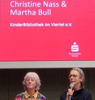 Als Ansprechpartnerinnen vor Ort unterstützten Christine Nass und Martha Bull in der Kinderbibliothek die Kinder bei ihrer Ausleihe. Zudem setzen sich ein für die Einkäufe von Sachbüchern, Bilderbüchern und Filmen und bereiten Bücher sowie Medien für die Aufnahme in den Bibliotheksbestand vor.